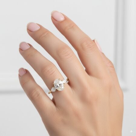 SKU: RE15362 Carat Oval Cut Lab Grown Diamond Engagement Ring with Pear Side Stones in 10K/14K/18K Gold – IGI CertifiedRated 4.67 out of 5(3 review(s))