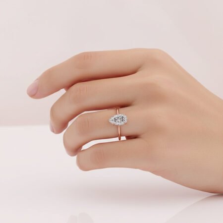 SKU: RE12392 Carat Pear Cut CVD Lab Grown Diamond Engagement Ring in 14K Rose Gold – IGI Certified EF Color VS1 Clarity – Romantic, Elegant & Ethical