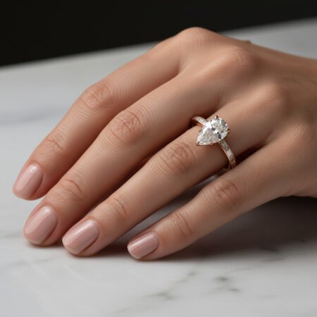 SKU: RE13021.5 Carat Pear Cut Lab Grown Diamond Hidden Halo Engagement Ring in 14K Rose Gold – EF Color VS1 Clarity – Certified Sustainable Jewelry
