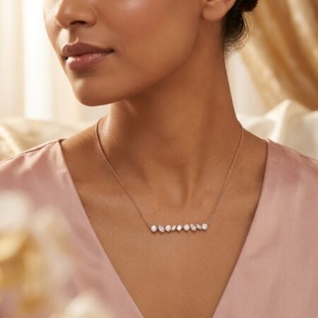 SKU: RE150916 Inch 8.50ctw Round & 1ct Emerald Cut IGI Certified CVD Lab-Grown Diamond Tennis Necklace in 18K Gold – Modern Centerpiece Choker