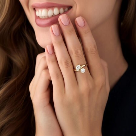 SKU: RE15881.50 ctw Toi et Moi Lab Diamond Ring | Marquise & Round Cut | Solid Gold Bypass Band
