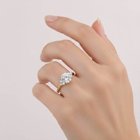 SKU: RE1205Round Cut 2.0 Carat F VS1 Lab-Grown Diamond Cluster Engagement Ring in 14K Yellow Gold – Side Round Diamonds