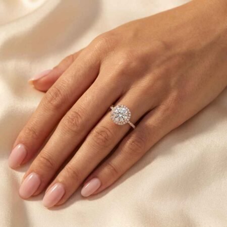 SKU: RE1189Round Cut 2 Carat E/VVS1 IGI Certified Lab Diamond Halo Engagement Ring in 14K Rose Gold – Side Round Diamonds, High Polish FinishRated 5.00 out of 5(5 review(s))