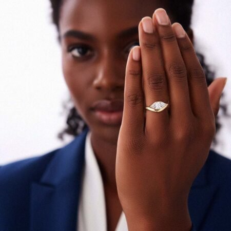 SKU: RE15671.07 ct East-West Pear Lab Diamond Ring | Curved Bypass Wave Band | Solid Gold