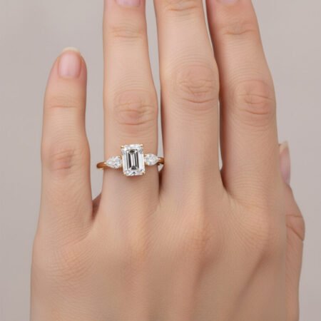 SKU: RE10402ct Emerald Cut E-F VS1 IGI Certified Lab Diamond Engagement Ring in 14K Rose Gold – Pear Side Stones