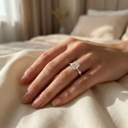 SKU: RE1251-ReadyReady to ship 1.5 Carat Cushion Cut CVD Lab Grown Diamond Engagement Ring in 14K Rose Gold – IGI Certified EF Color VS1 Clarity – Romantic & Sustainable Choice