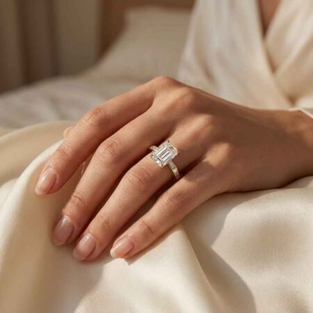 SKU: RE13072 Carat Emerald Cut Three Stone Lab Grown Diamond Ring in 14K Gold – EF Color VS1 Clarity – Certified Ethical Engagement or Anniversary Ring