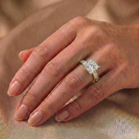 SKU: RE13012.5 Carat Princess Cut Lab Grown Diamond Engagement Ring with Round & Baguette Side Stones in 14K Yellow Gold – EF Color VS1 Clarity – Certified Ethical RingUS$4,232.00Original price was: US$4,232.00.US$2,327.60Current price is: US$2,327.60. -