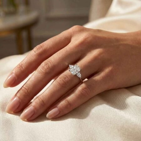 SKU: RE15362 Carat Oval Cut Lab Grown Diamond Engagement Ring with Pear Side Stones in 10K/14K/18K Gold – IGI CertifiedRated 4.67 out of 5(3 review(s))