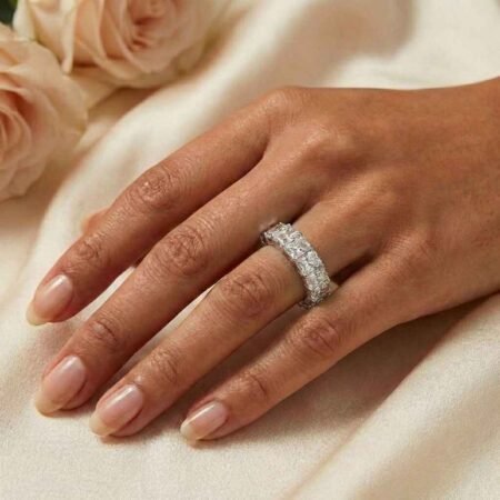 SKU: RE1511Radiant Cut 5–8ctw IGI Certified CVD Lab Diamond Eternity Band Ring in 10K Gold – Full Finger Sparkle