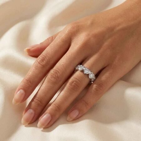SKU: RE1513Heart Cut 3–4.50ctw IGI Certified CVD Lab Diamond Eternity Band Ring in 10K Gold – Bezel Set Romantic Style