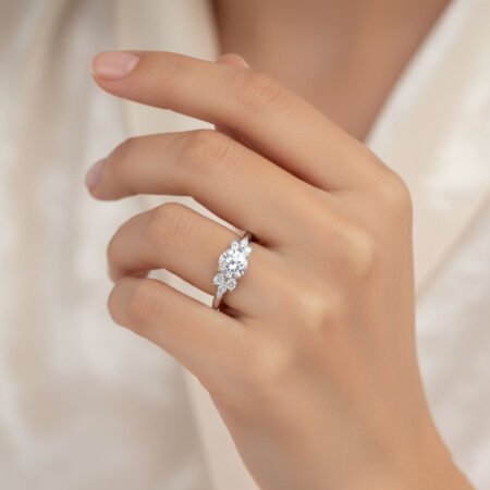 SKU: RE16063ct Round Lab Grown Diamond Engagement Ring, IGI Certified, 14K Gold, E-F/VS1, Floral Marquise Accents
