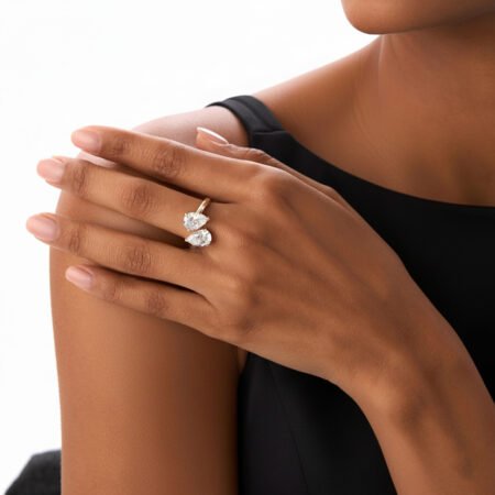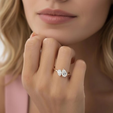 SKU: RE15823.03 ctw Pear Lab Diamond Toi et Moi Ring | Two Stone Bypass Ring | Solid Gold