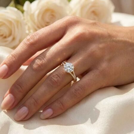 SKU: RE12951.5 Carat Round Cut Lab Grown Diamond Hidden Halo Engagement Ring in 14K Gold – EF Color VS1 Clarity – Certified Ethical Jewelry