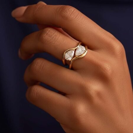 SKU: RE15792.10 ctw Pear Lab Diamond Bridal Set | 2-Piece Interlocking Solitaire Rings | Solid Gold
