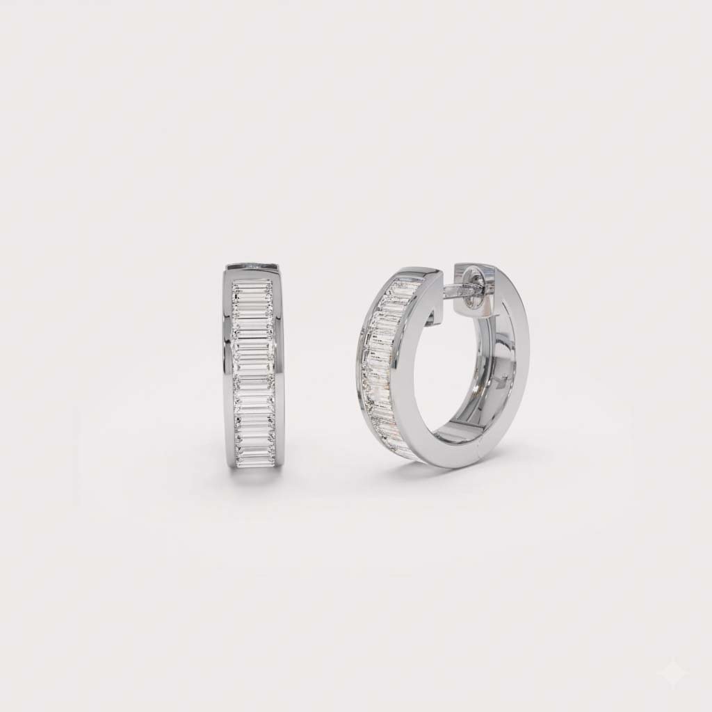 0.71 ctw Baguette Lab Diamond Hoop Earrings | Channel Set Huggies | Solid Gold