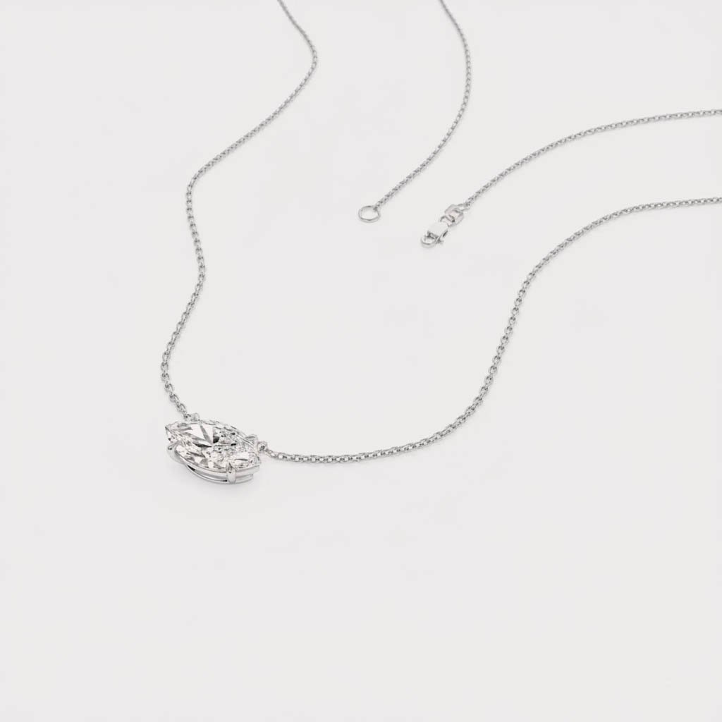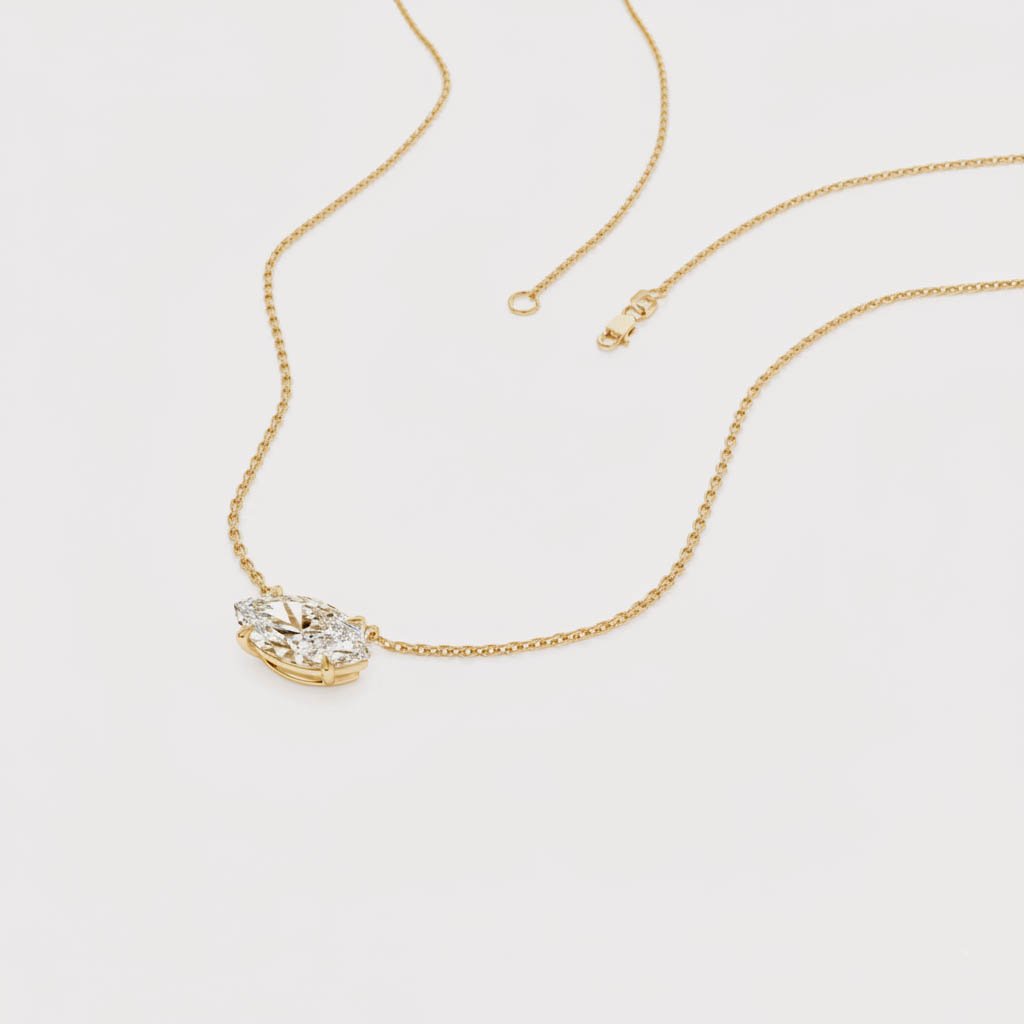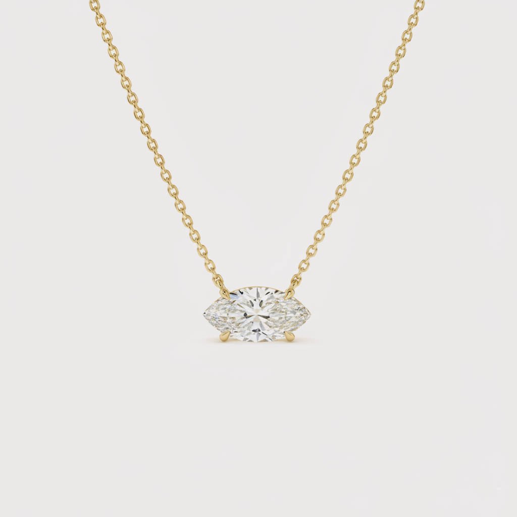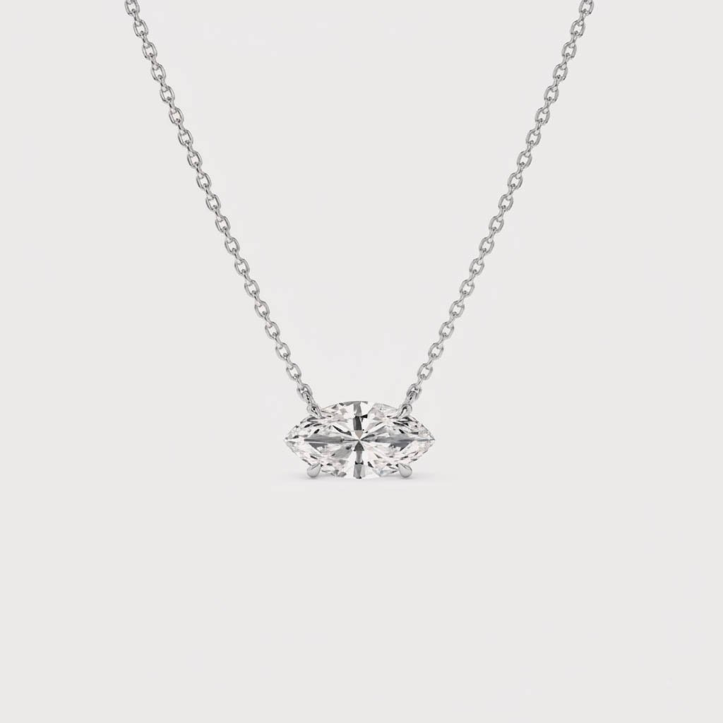 1.01 ct East-West Marquise Lab Grown Diamond Necklace, 14K Gold Solitaire Pendant, EF/VS1 CVD