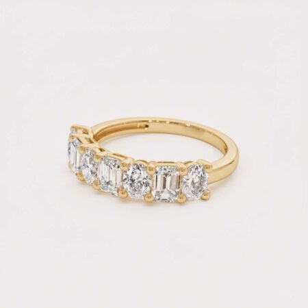 1.01 ctw Mixed Cut Lab Diamond Wedding Band | Alternating Emerald & Pear | Solid Gold