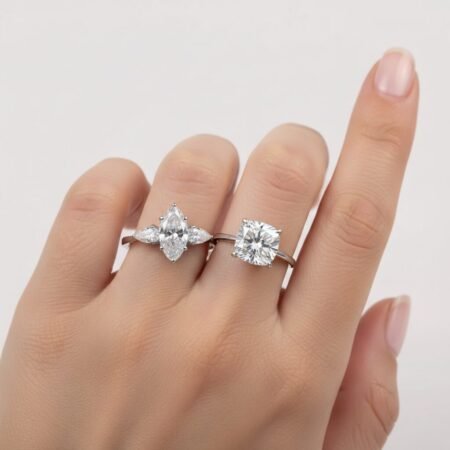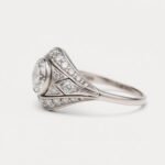 • Unique Geometric Halo: The elongated “shield” or “navette” shape provides a striking, custom look that stands out from typical solitaires or round halos.