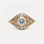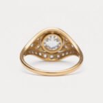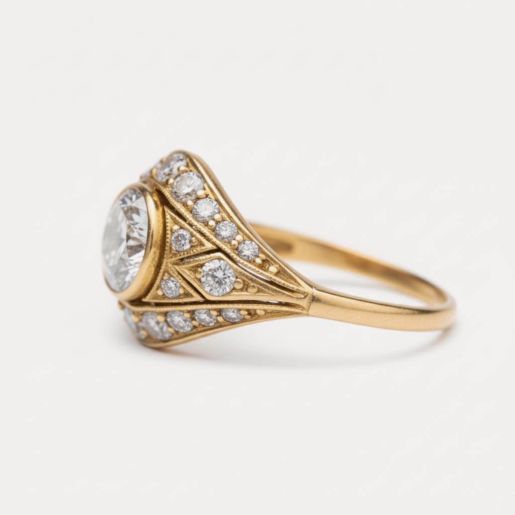 1.08ct Round Lab Grown Diamond Ring, Art Deco Shield Halo, 14K Gold, IGI Certified EF/VS1
