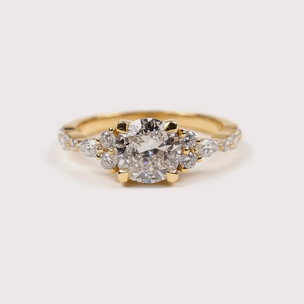 1.45 ctw Round Lab Grown Diamond with Marquise Side Diamonds Engagement Ring 14K Gold IGI Certified