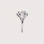 This beautiful, curved setting holds a brilliant 1.50 ct oval-cut diamond in a secure 4-prong basket. The exceptional, high-quality CVD diamond boasts an EF Color and VS1 Clarity, delivering a bright, eye-clean, and fiery sparkle.