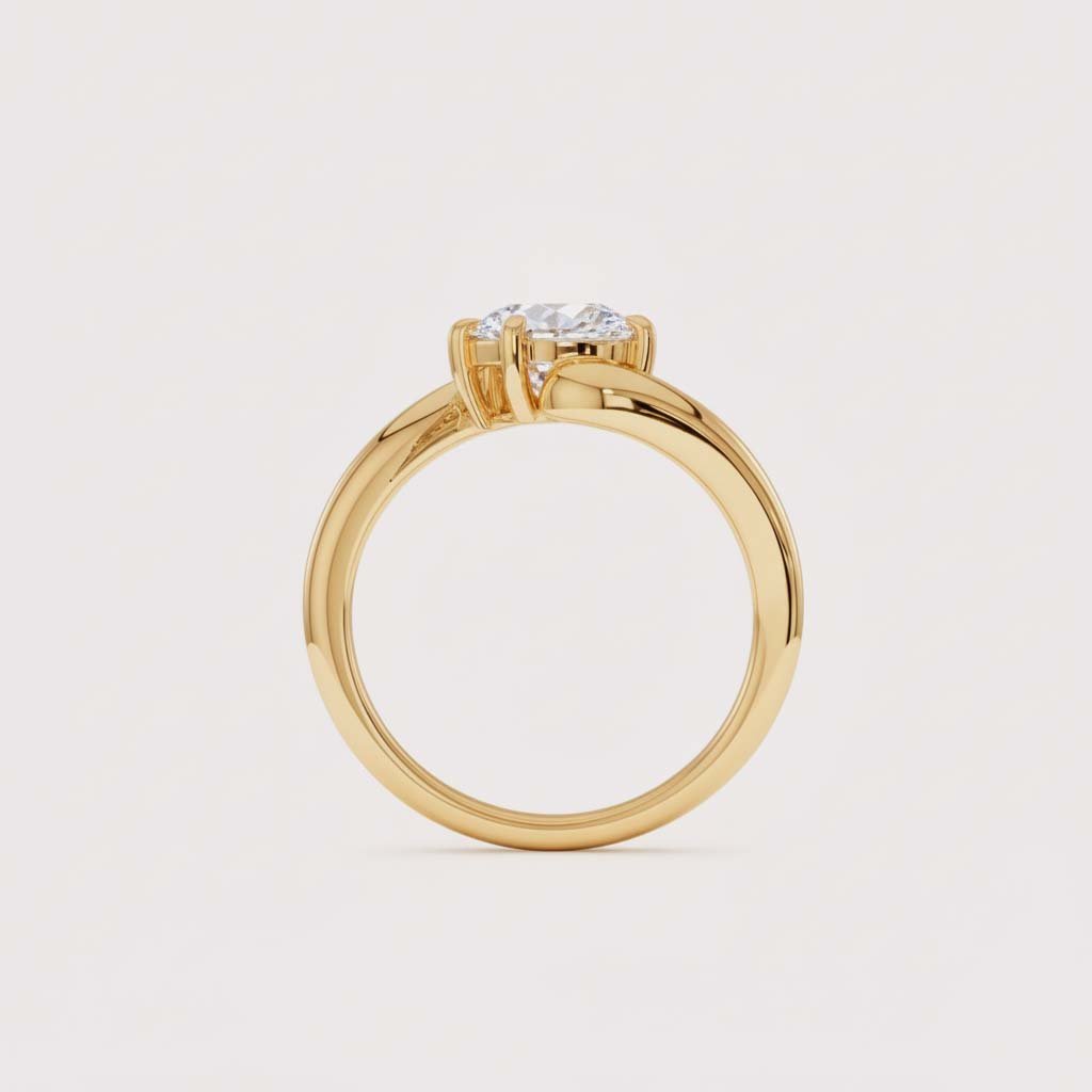 Capture the essence of fluid elegance with our 1.50 ct (approx.) Oval Lab Diamond Engagement Ring. This stunning solitaire ring features a modern “bypass” design, where the polished solid gold band gracefully splits and sweeps around the center stone.