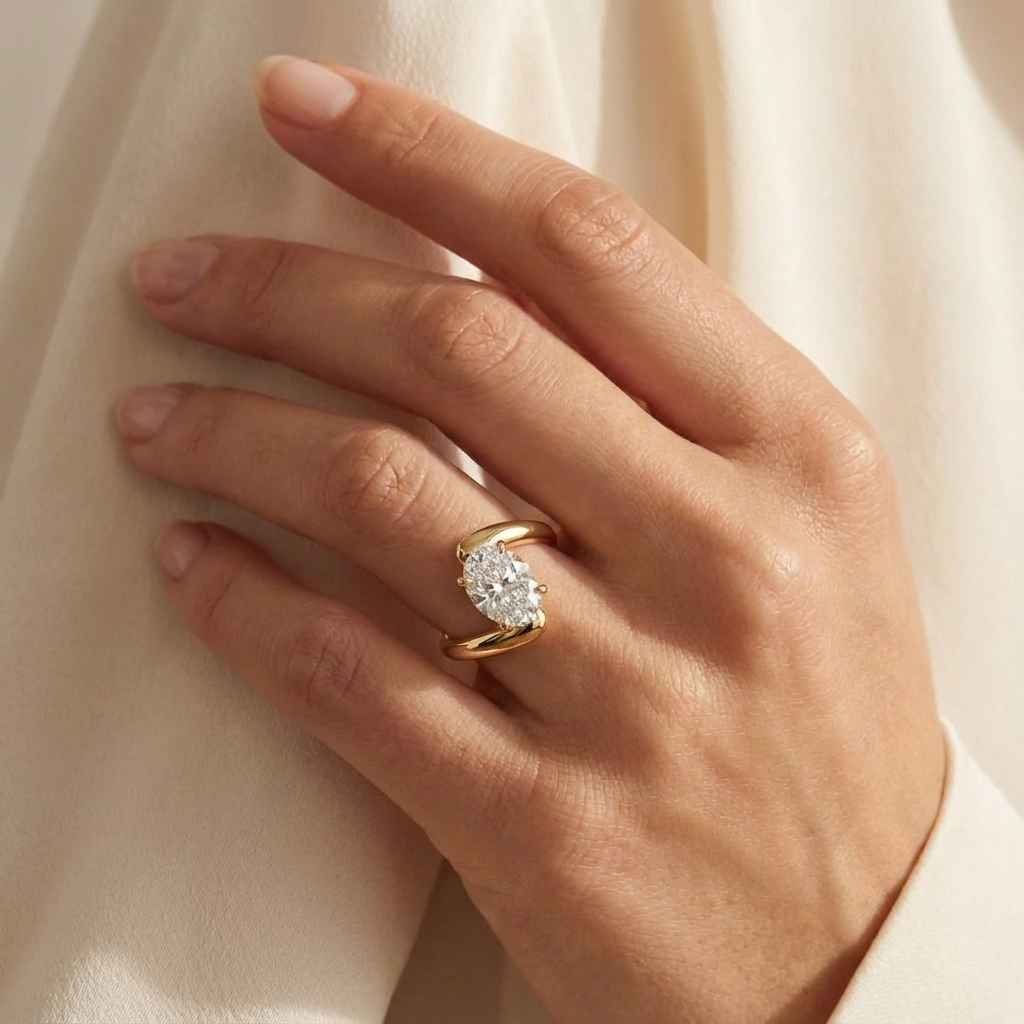 1.50 ct Oval Lab Diamond Engagement Ring | Modern Bypass Solitaire | Solid Gold