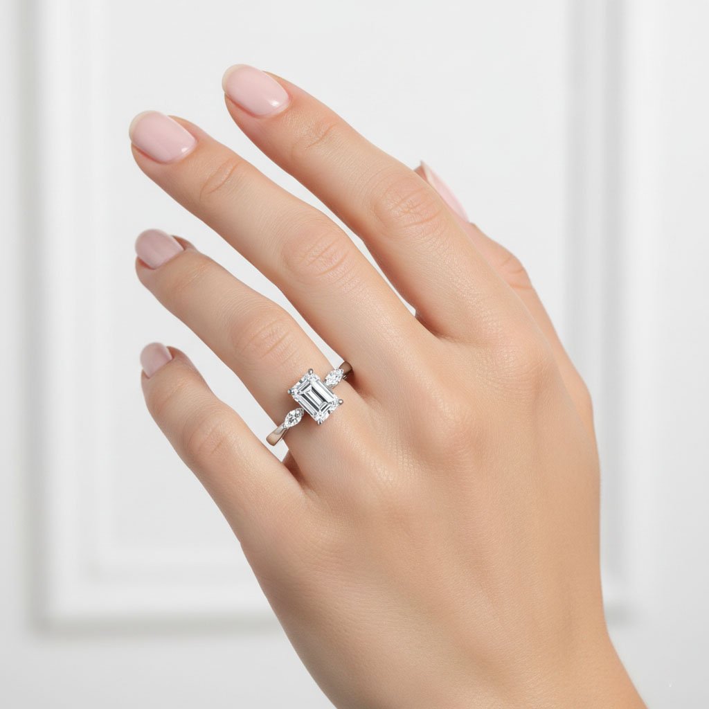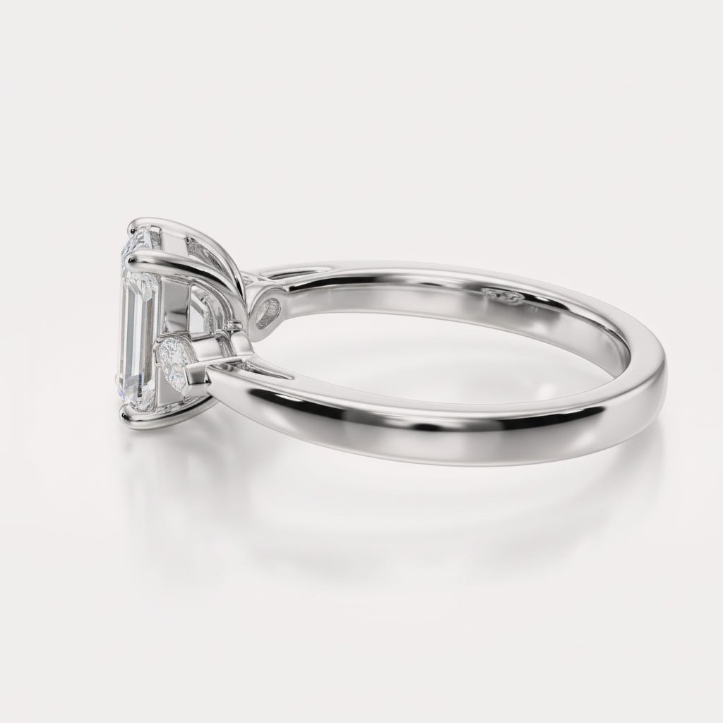 1.58ct Emerald Cut Lab Grown Diamond Ring, IGI Certified, Marquise Side Stones