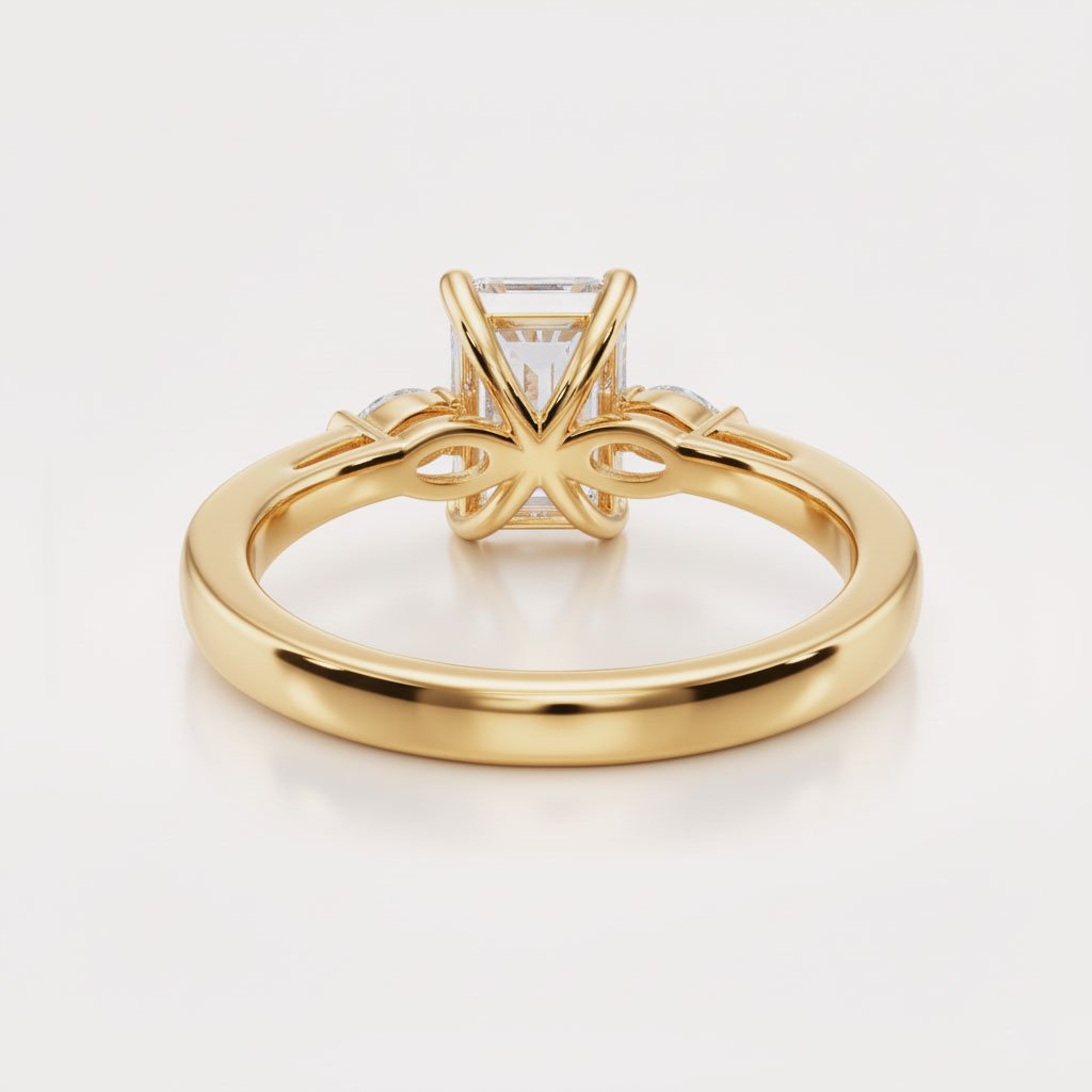 - Center Stone: 1.58 ct approx. Emerald Cut Lab Grown Diamond (CVD)