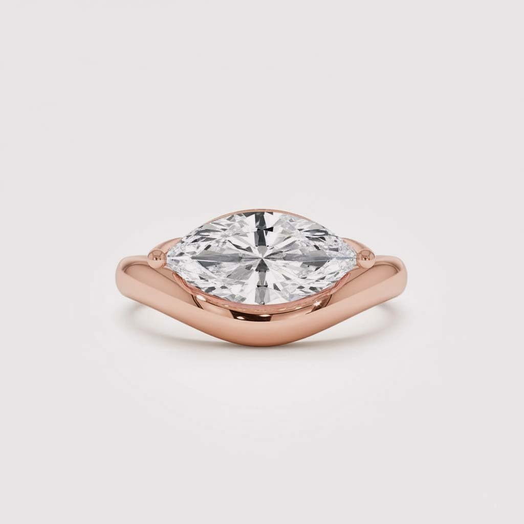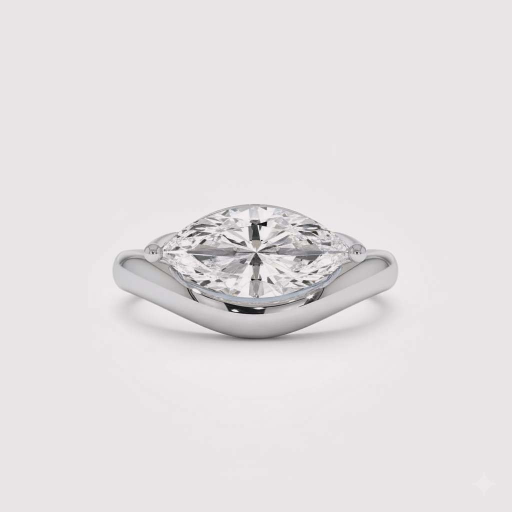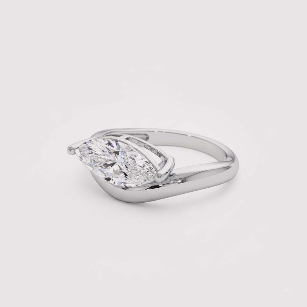 1.61 ct East-West Marquise Lab Diamond Ring | Curved Bypass Solitaire | Solid Gold
