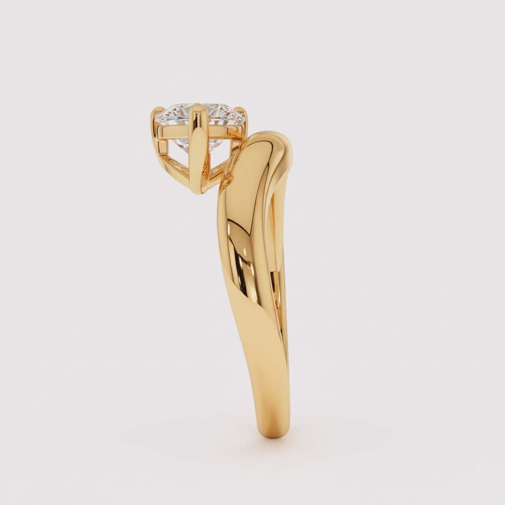 The polished solid gold band gracefully parts and sweeps around the stone, creating a modern ‘bypass’ design that is both elegant and secure. The setting itself acts as a half-bezel, protecting the diamond’s delicate points while allowing for maximum light.