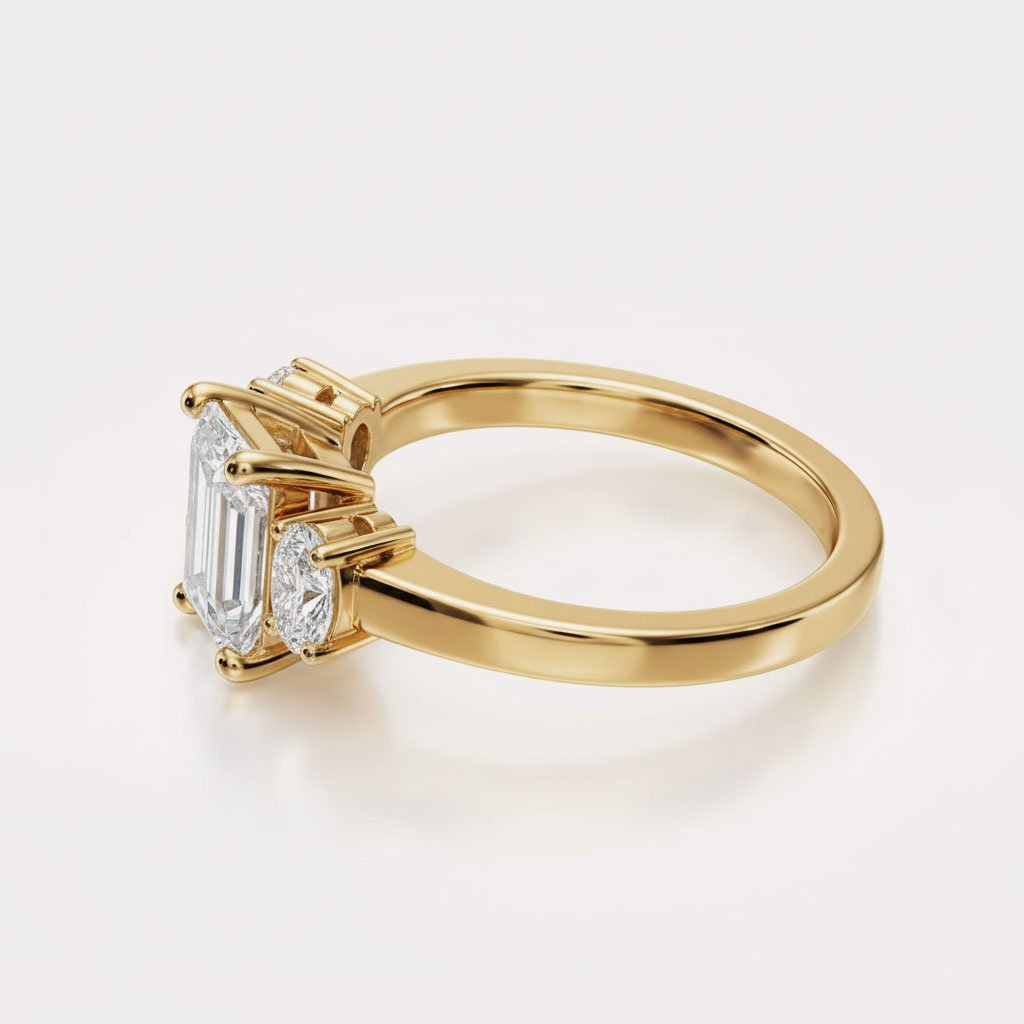 1.85 ctw Emerald Cut Lab Diamond Three Stone Ring | Oval Sides | IGI Certified | 14K Gold
