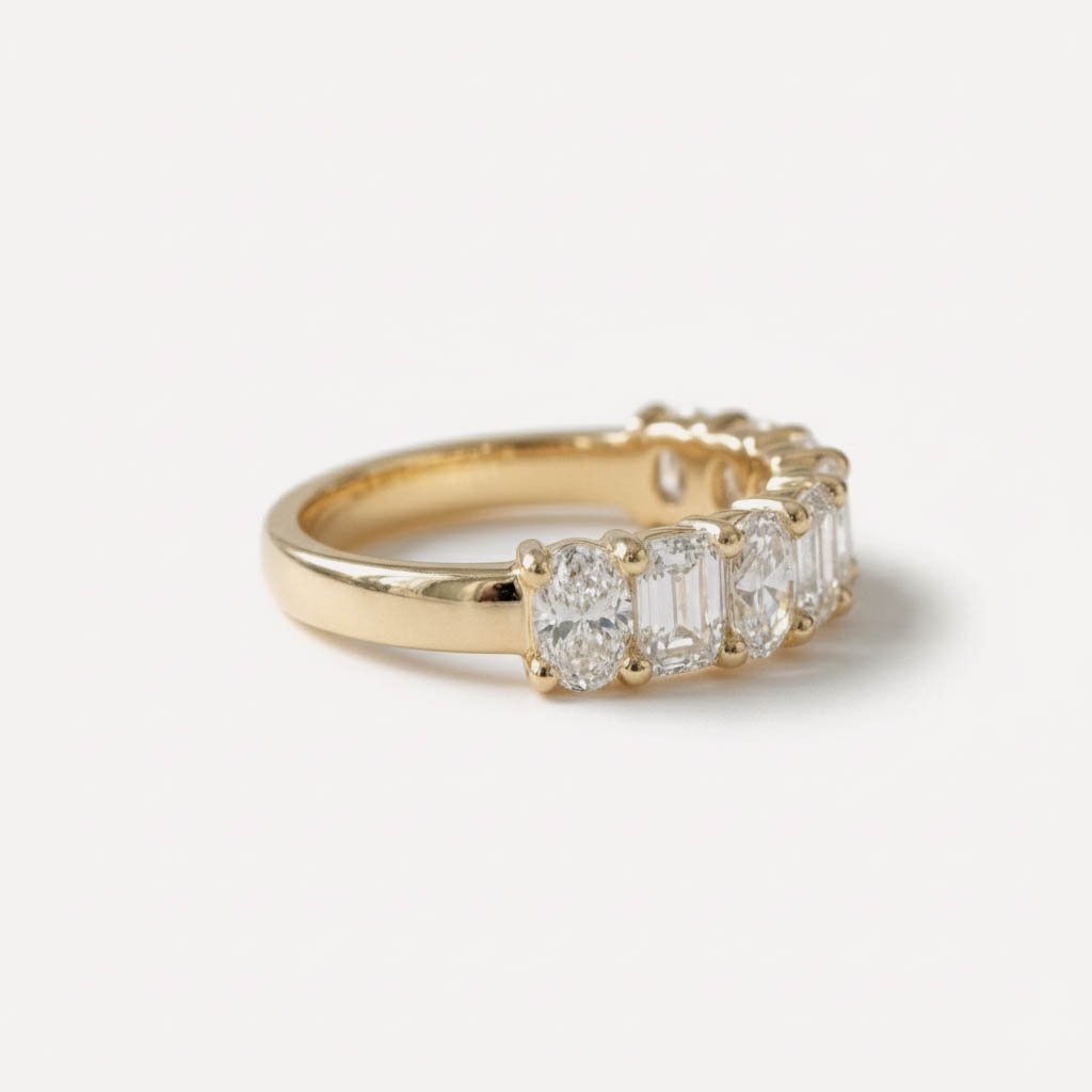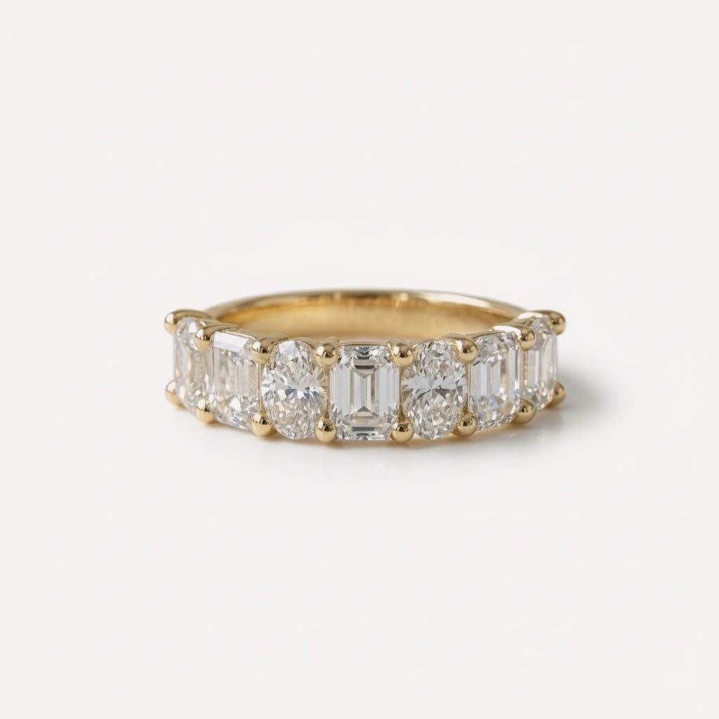 1.85 ctw Mixed Cut Lab Diamond Band | Alternating Emerald & Oval | Solid Gold