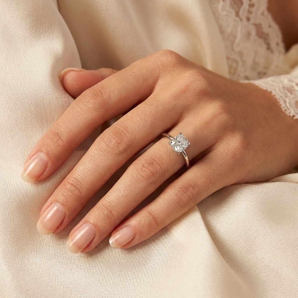 1 Carat Cushion Cut Lab Grown Diamond Solitaire Engagement Ring in 18K White Gold – EF Color, VS1 Clarity, IGI Certified