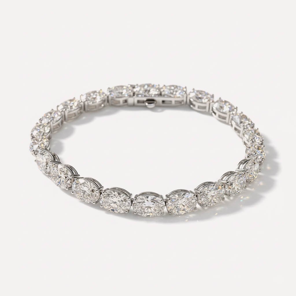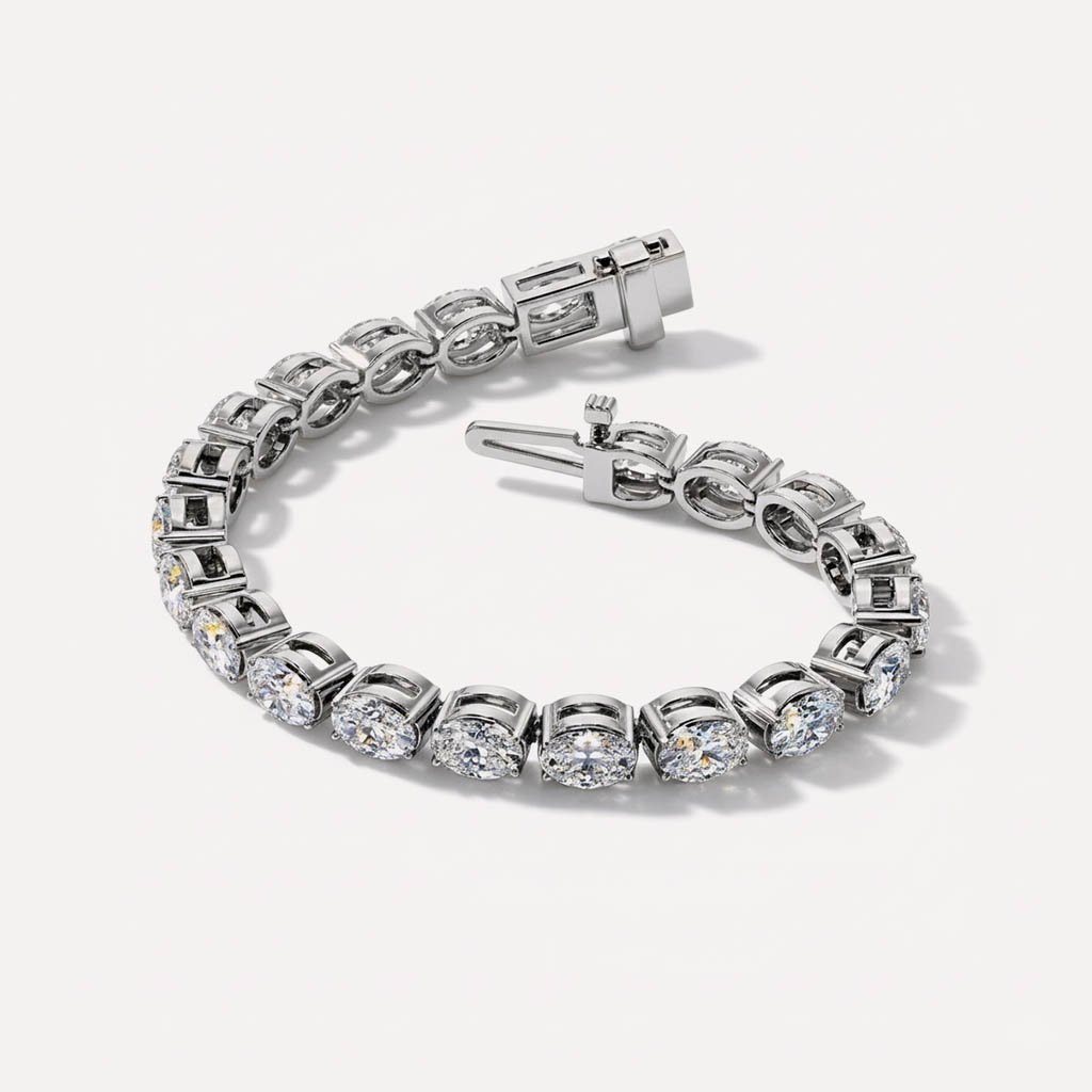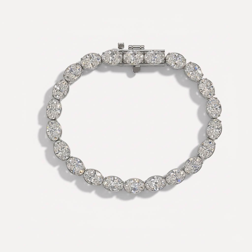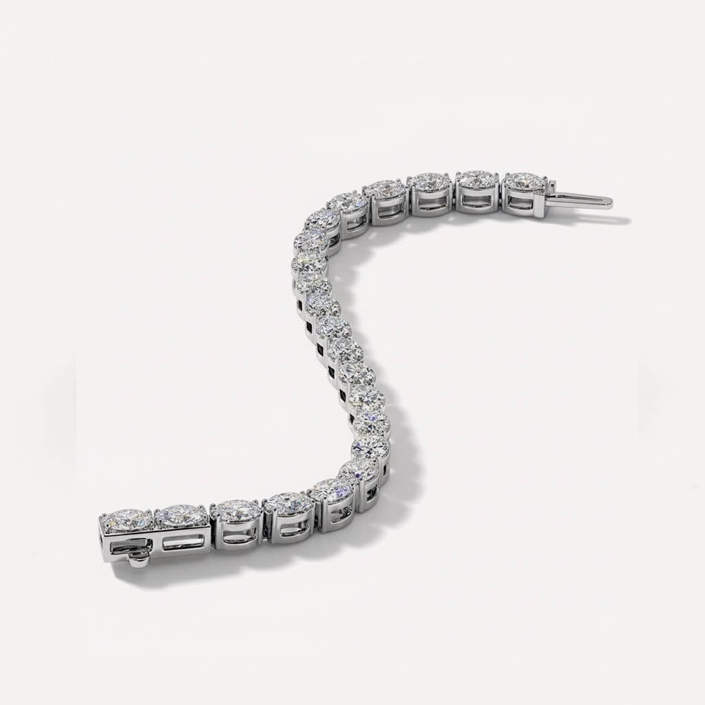 Elevate your jewelry collection with this stunning 15.90CT Oval Cut Lab-Grown Diamond Tennis Bracelet in 14K White Gold. Designed to exude timeless elegance, this diamond bracelet features oval-cut CVD diamonds, offering unparalleled brilliance and luxury. Whether you’re looking for a holiday gift, a Christmas gift for your wife, or a statement bracelet for women, this gold tennis bracelet is the perfect choice.