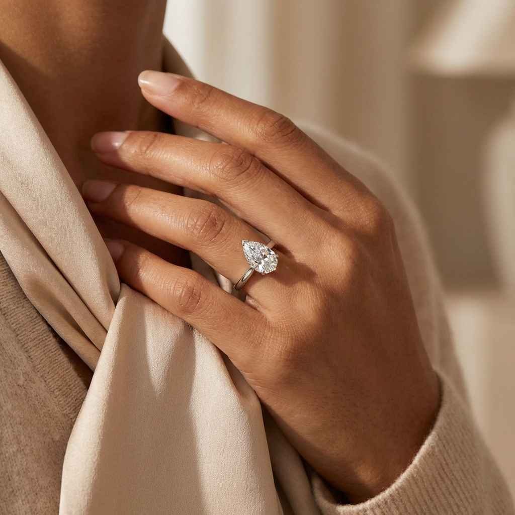 2.00 Carat Pear Cut CVD Lab Grown Diamond Engagement Ring in 14K White Gold – Hidden Halo Setting, IGI Certified EF Color VS1 Clarity | Ringsearth