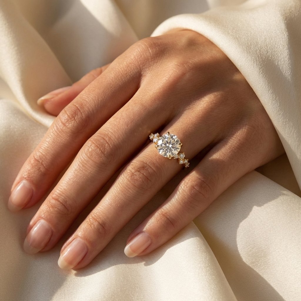 2.02 Carat Round Lab-Grown Diamond Cluster Engagement Ring 14K Gold IGI Certified