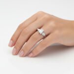 Celebrate a love that is both timeless and unique with this IGI Certified Three-Stone Engagement Ring. The design features a stunning “mixed cut” combination that blends geometric precision with soft curves.