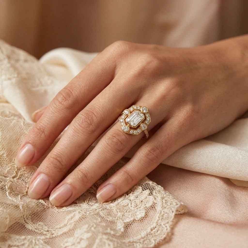 - Vintage Detailing: Features antique-style milgrain borders and geometric cutouts on the shank for a unique, handcrafted feel.