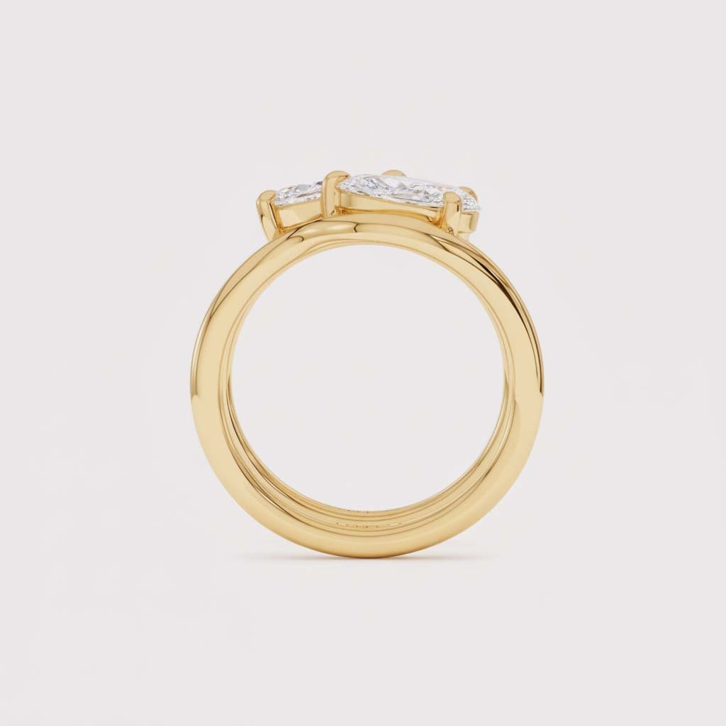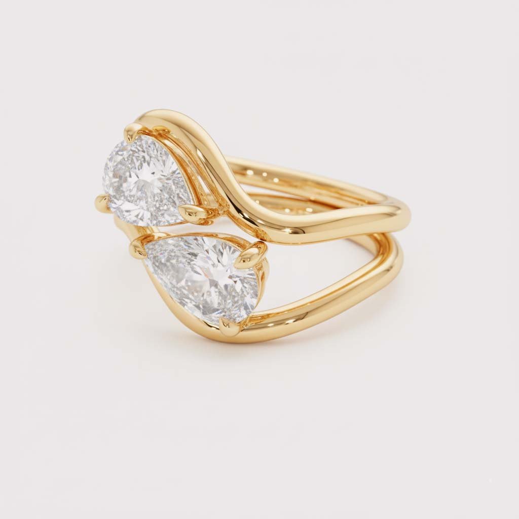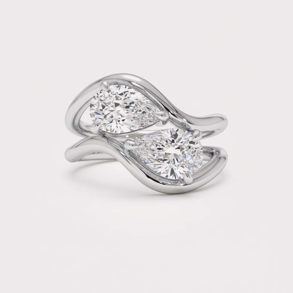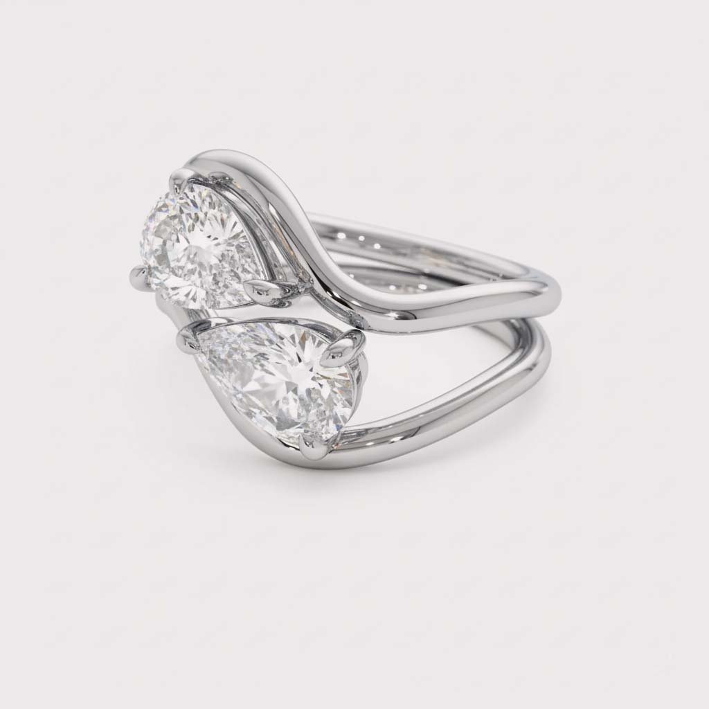 Each ring showcases a brilliant 1.05 ct (approx.) pear-cut lab-grown diamond. When worn together, they create a stunning two-stone “Toi et Moi” look, symbolizing two lives joining as one. Wear them stacked or as a distinct engagement ring and wedding band.