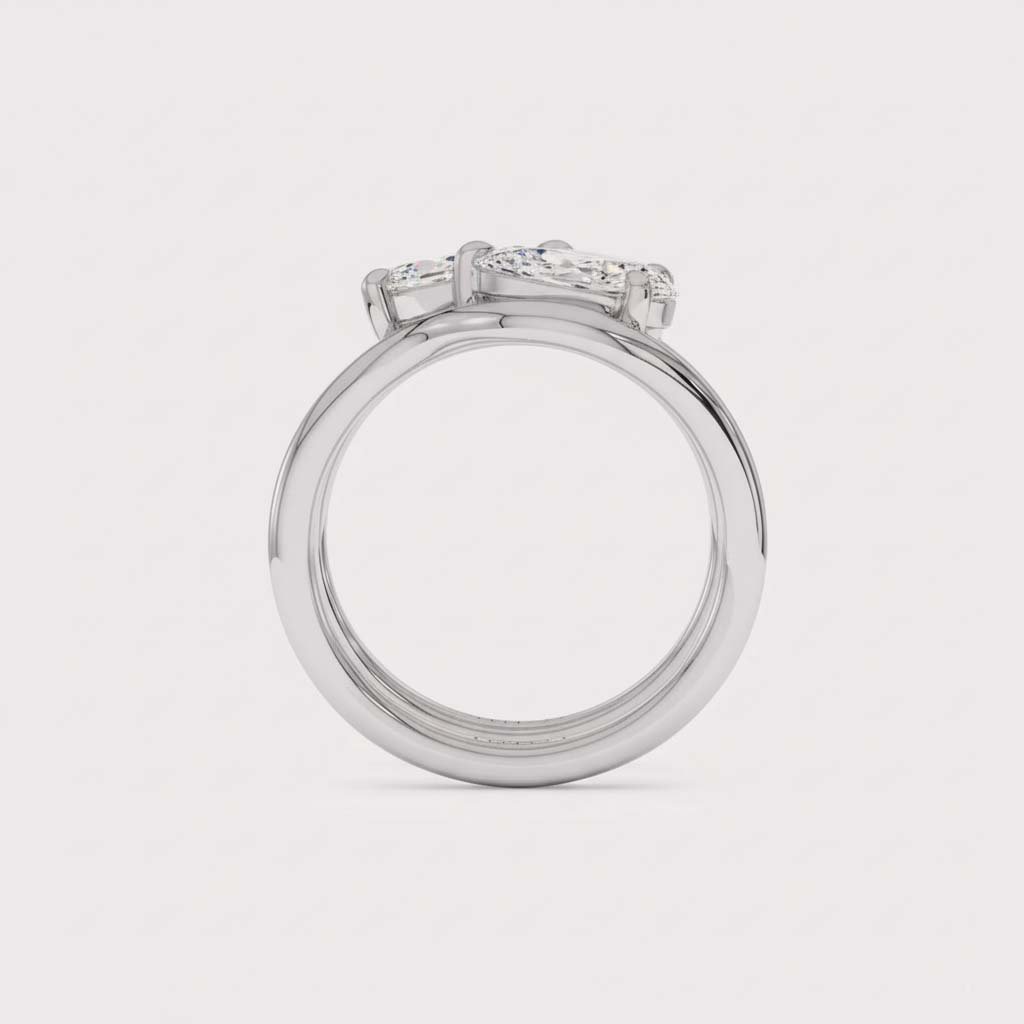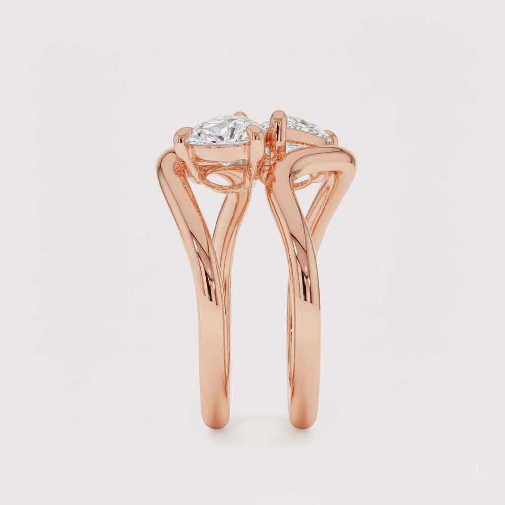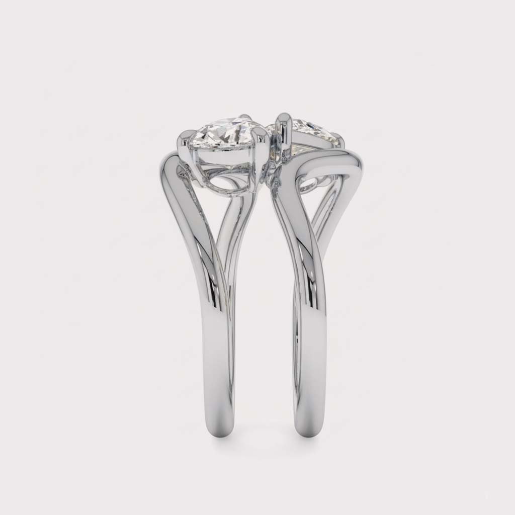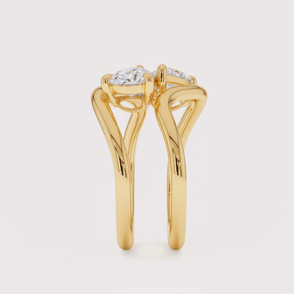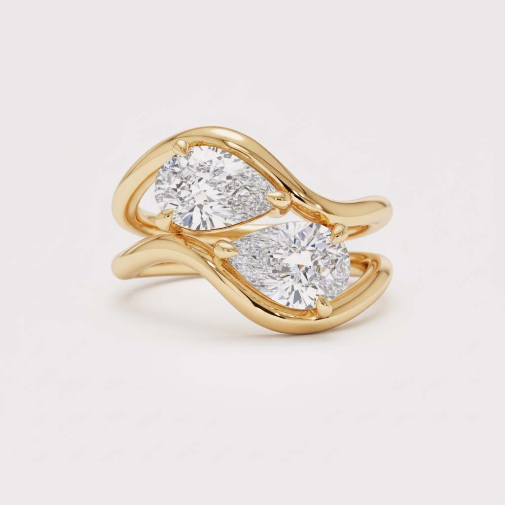 Each ring showcases a brilliant 1.05 ct (approx.) pear-cut lab-grown diamond. When worn together, they create a stunning two-stone “Toi et Moi” look, symbolizing two lives joining as one. Wear them stacked or as a distinct engagement ring and wedding band.