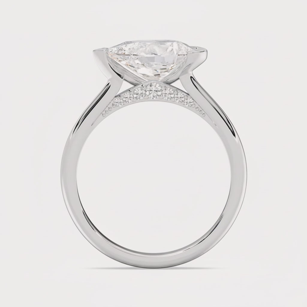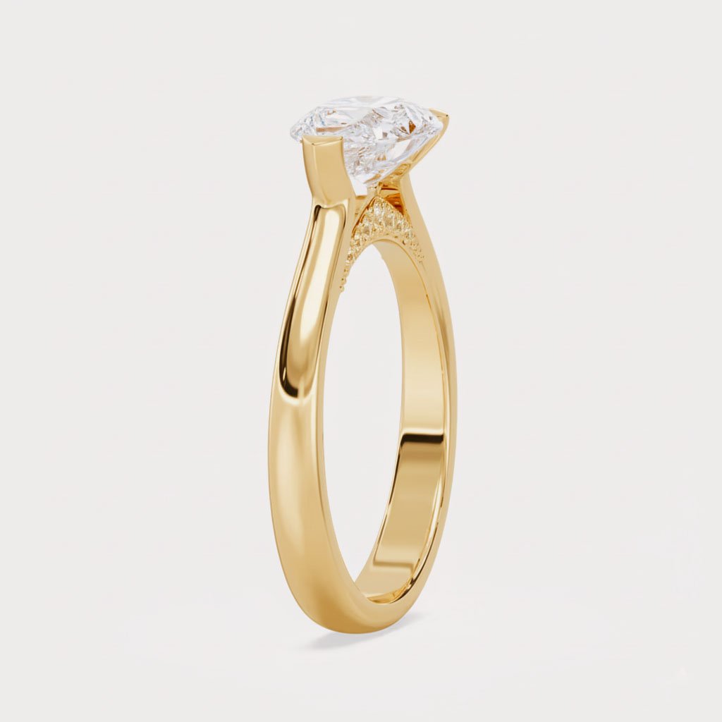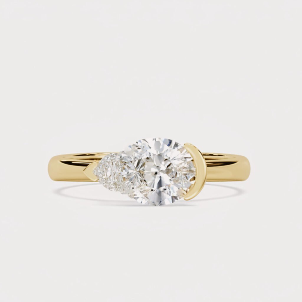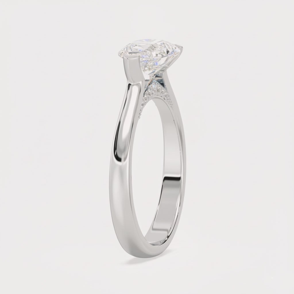 • Center Stone: 2.10 ct (approx) Pear Cut Lab Grown Diamond (CVD)