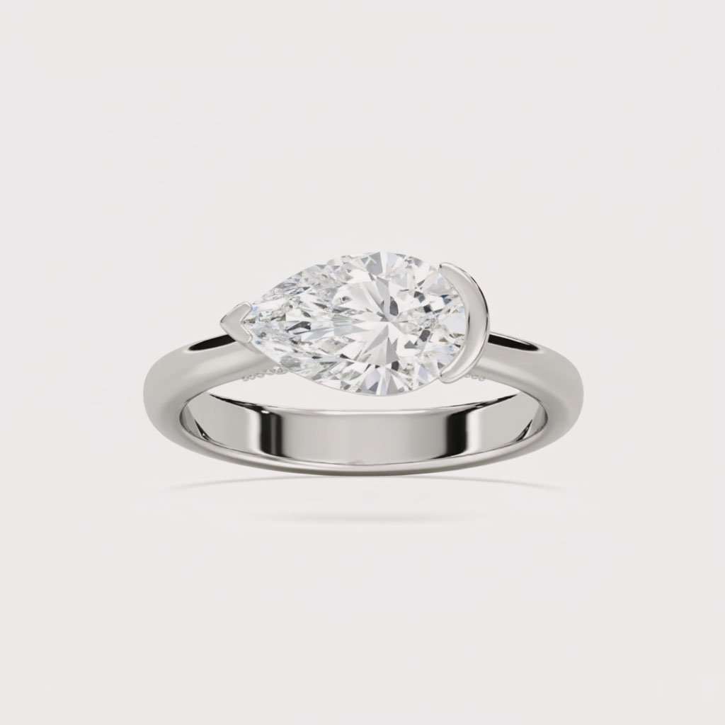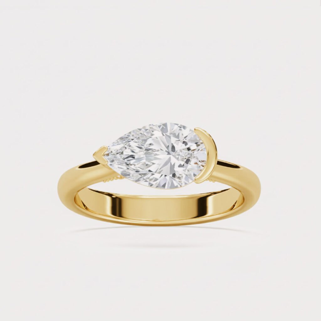 2.10ct Pear Cut Lab Grown Diamond Engagement Ring, 14K Gold, IGI Certified, Modern Bezel Setting