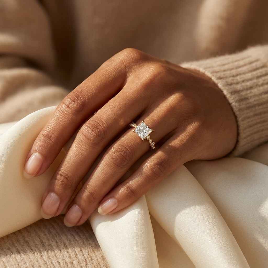 Captivating 2.16 CT IGI Certified Princess Cut CVD Diamond ring crafted in elegant 14K Yellow Gold. This exquisite piece features a radiant Princess Cut Diamond, certified by IGI, adorned with shimmering Side Round Diamonds, perfect for engagements and weddings
