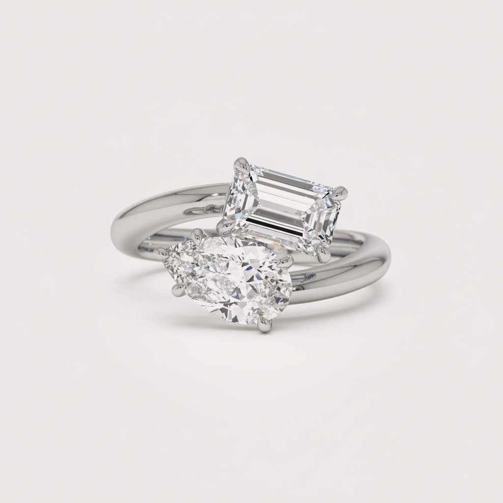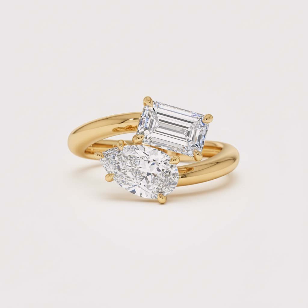 2.21 ctw Toi et Moi Lab Diamond Ring | Pear & Emerald Cut | Solid Gold Bypass Band