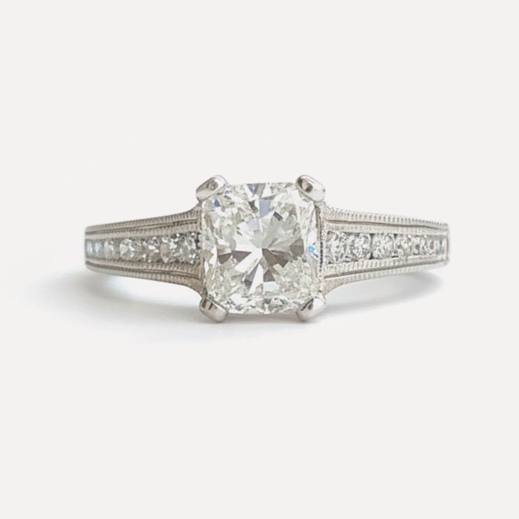 Elevate your engagement proposal with this timeless 2.23 ctw Cushion Cut Lab Grown Diamond Ring. This design masterfully blends vintage heirloom charm with a sleek, snag-free profile, making it an ideal choice for a lifetime of daily wear.