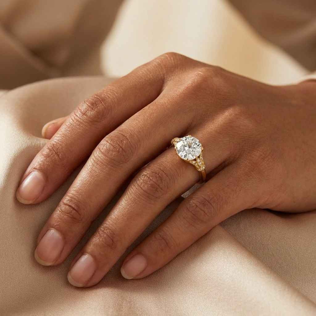 - Distinctive Old Mine Cut: Known for its “chunky” sparkle and visible open culet, this cut mimics the hand-cut diamonds of the 18th and 19th centuries.