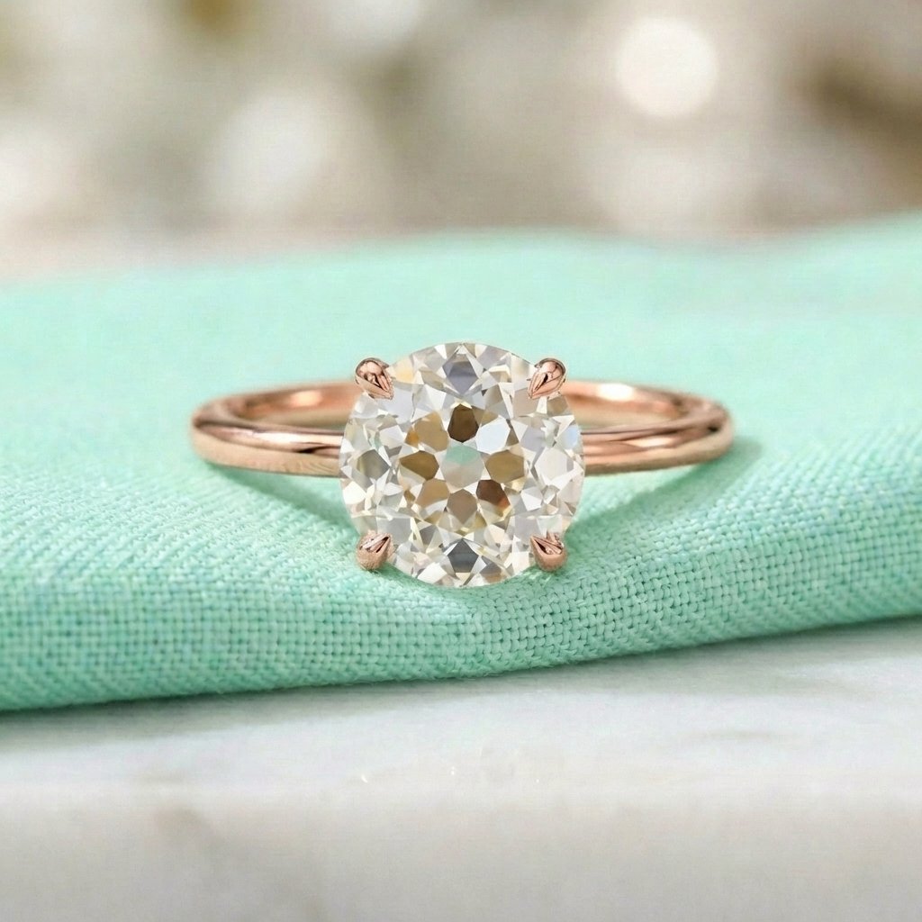 Fall in love with the charm of a bygone era with this exquisite Old European Cut Lab Grown Diamond Engagement Ring, featuring a stunning 2.44 Ct round center diamond in a classic solitaire setting.