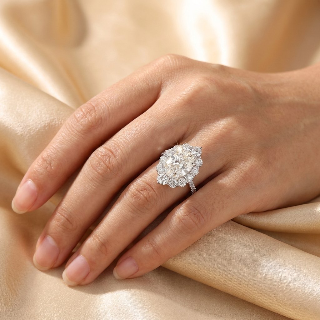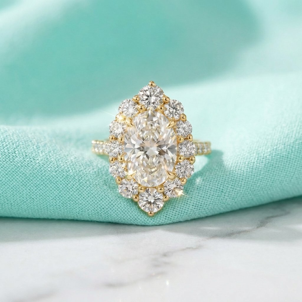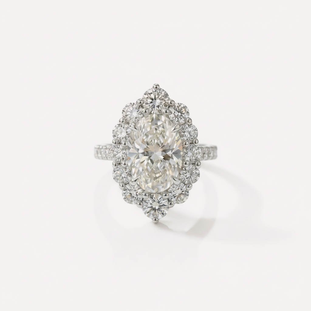 2.51 Ct Oval Cut Lab Grown Diamond Halo Engagement Ring with 0.82 Ctw Round Diamonds 14K Gold IGI Certified D VS1